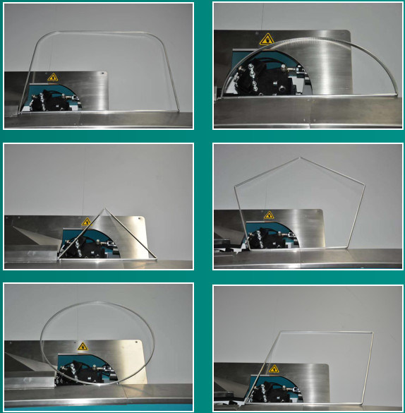 • Struttura di piegamento di forma. Facendo uso del dispositivo della ruota del cerchio per piegare il cerchio incornici o incornici con gli angoli del cerchio. Il min R60, R150 massimo, distanziatore gradua: 6A – 16A). Le dimensioni differenti delle barre di alluminio richiedono gli strumenti differenti di dimensione (facoltativi)