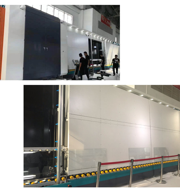 La sezione di vetro di lavaggio, lavando la sezione di scarico, alla scatola sul periodo di controllo di fermata, controllo se il vetro è pulito, qualificato dopo avere fatto un passo a piedi commutatore al primo pezzo di vetro nel piatto o al pezzo di tenuta di posizionamento, del sostegno o del fascio una lastra di vetro prima della pressatura per assorbire il vetro nel passato, fronte del bordo per aprirsi sul posto, nel tempo di scarico di lavaggio del secondo pezzo di vetro in mezzo al primo pezzo di vetro lascerà il periodo poiché il lancio, nella scatola sul periodo del controllo, posizionante fermata, ha qualificato struttura manuale che fa un passo a piedi commutatore, il vetro della struttura nei pezzi che posizionano la pressatura. Il vetro d'isolamento appiattito può essere trasferito automaticamente alla sezione d'alimentazione della linea automatica della colla di sigillamento. (nella piattaforma girevole, alla fermata fotoelettrica. Il punto sul piede e sulla tavola di inclinazione cadrà automaticamente. Dopo che la lastra è rimossa, il punto sul piede e sulla tavola di inclinazione aumenterà. (selezioni se usare la funzione di ribaltamento della tavola di ribaltamento secondo la dimensione del vetro) (la tavola di ribaltamento è configurata per la selezione)
