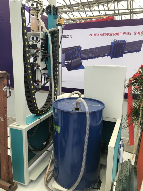 Per il robot automatico di sigillamento, la testa meccanica è davanti alla macchina, può raggiungere il collegamento reale con la linea di produzione del doppi vetri quando produce il vetro di punto.