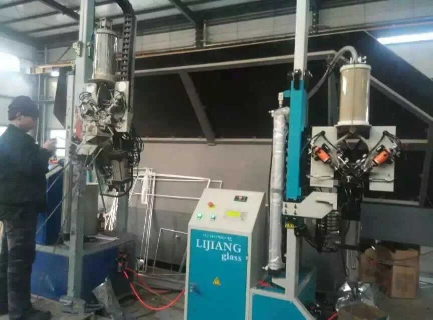 Per il robot automatico di sigillamento, la testa meccanica è davanti alla macchina, può raggiungere il collegamento reale con la linea di produzione del doppi vetri quando produce il vetro di punto.