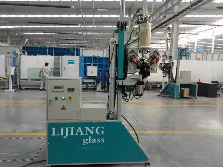 Per il robot automatico di sigillamento, la testa meccanica è davanti alla macchina, può raggiungere il collegamento reale con la linea di produzione del doppi vetri quando produce il vetro di punto.