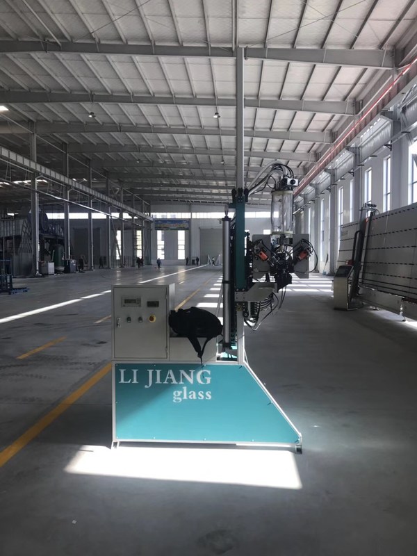 Per il robot automatico di sigillamento, la testa meccanica è davanti alla macchina, può raggiungere il collegamento reale con la linea di produzione del doppi vetri quando produce il vetro di punto.