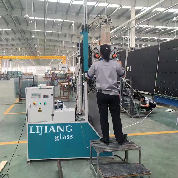 Per il robot automatico di sigillamento, la testa meccanica è davanti alla macchina, può raggiungere il collegamento reale con la linea di produzione del doppi vetri quando produce il vetro di punto.