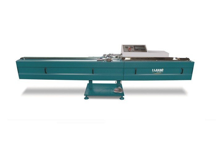 La macchina butilica dell'espulsore è utilizzata per il rivestimento della striscia non flessibile del distanziatore, che è composta di circuito idraulico, sistema di riscaldamento, il sistema di controllo, fusoliera ecc. In primo luogo, l'attrezzatura individua automaticamente la larghezza del distanziatore, i dati sono trasmessi all'ugello di gomma, di modo che la larghezza di apertura dell'ugello di gomma raggiunge la larghezza dello stato della colla e poi il nastro trasportatore trasporta la striscia del distanziatore all'ugello di gomma e l'ugello di gomma incolla simultaneamente da entrambi i lati della striscia del distanziatore. Entro tempo accurato dello spruzzo e della rottura dell'ugello della colla di controllo dello SpA e poi tramite il controllo del convertitore di frequenza del motore e del circuito idraulico la quantità di colla, di modo che l'intervallo fra i due lati del controllo della colla all'interno di 0,1 grammi