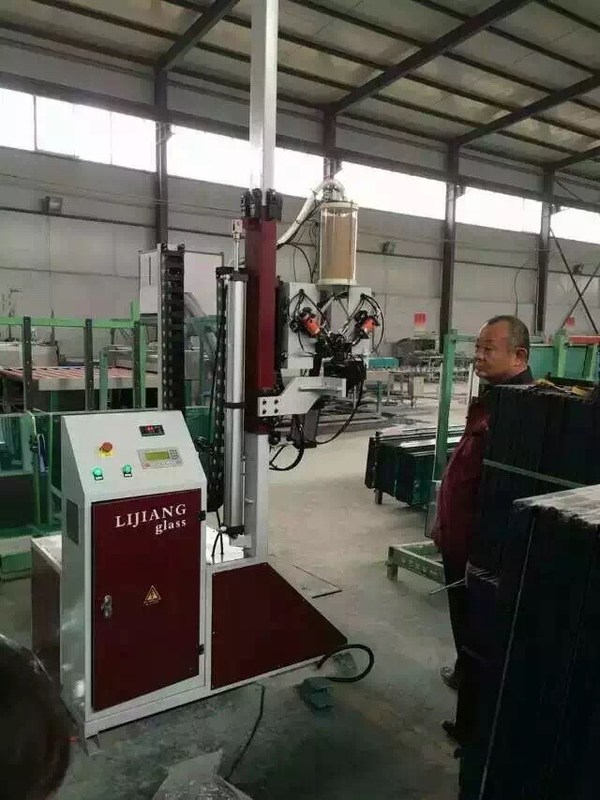 Per il robot di sigillatura automatico, la testa meccanica è davanti alla macchina, può raggiungere il collegamento reale con la linea di produzione del doppi vetri quando produce il vetro di punto.