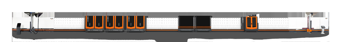 Utilizzando la tecnologia Air-floating per trasferire il vetro Per migliorare l'elevata qualità della produzione di IG, è necessario evitare che il vetro sia contaminato dalle ruote e lasci tracce.La linea ha sette sezioni: