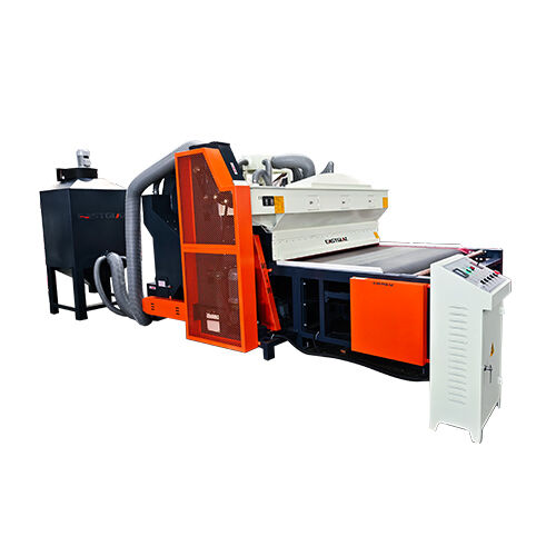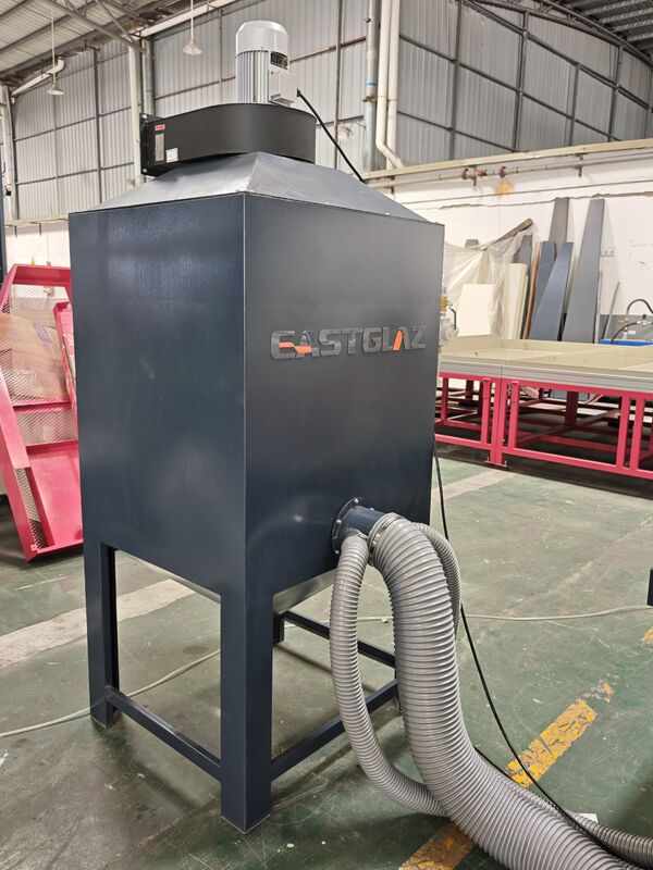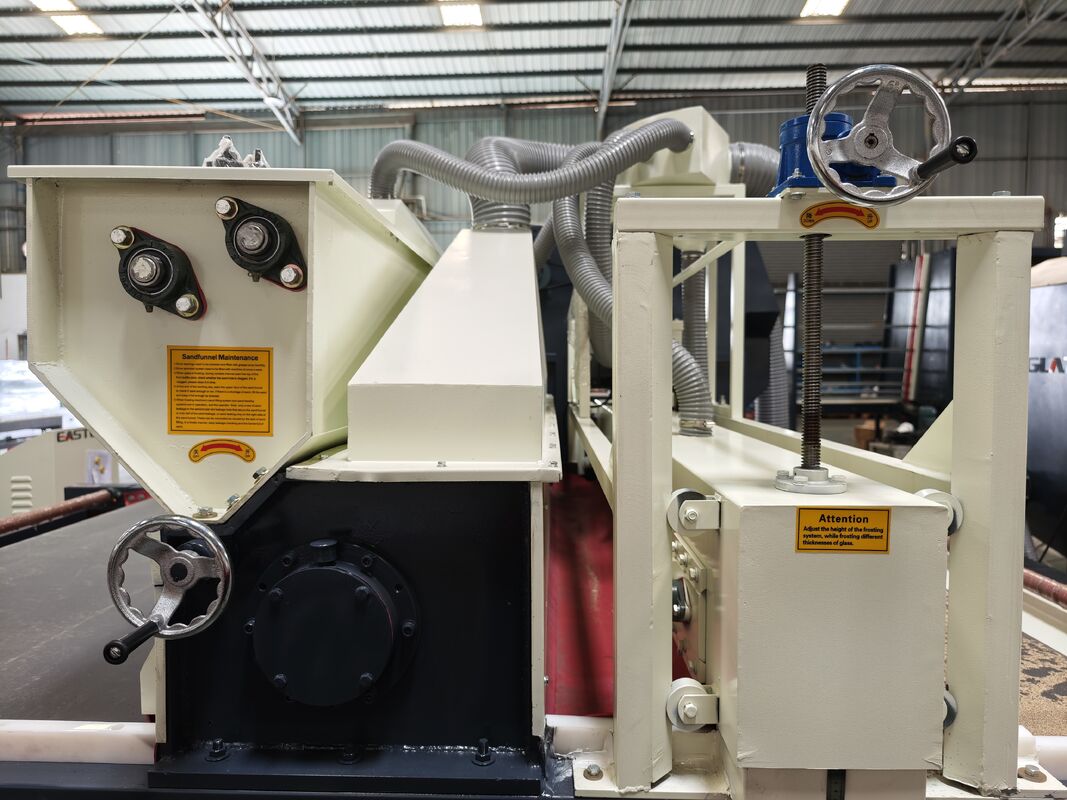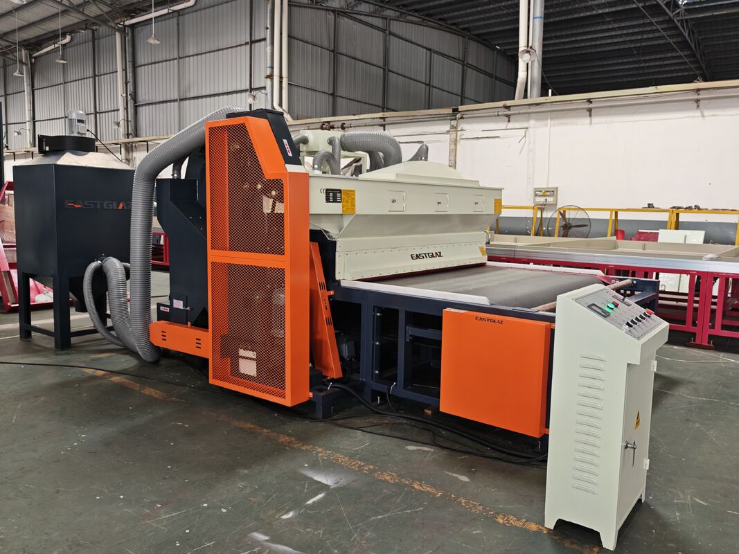 Full-automatic glass sandblasting machine contains of dust collecting--sand sweeping--transportation--grit feeding--sandblasting--sound attenuation--grit filtration--grit equalization--grit storage--shakeout. Ogni sezione del processo di produzione viene completata automaticamente. Ambiente di lavoro migliorato e riduzione dell'intensità del lavoro.la macchina è stata accettata e selezionata dalla maggior parte dei clientiQuesta macchina è adatta per la levigatura della superficie di vetro, acrilico, pietra, ceramica, metallo e altri materiali.